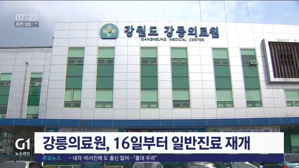 강릉 의료원은 오는 16일부터 응급과 중환자의 입원 진료 서비스를 재개할 방침이라고 밝혔습니다.
