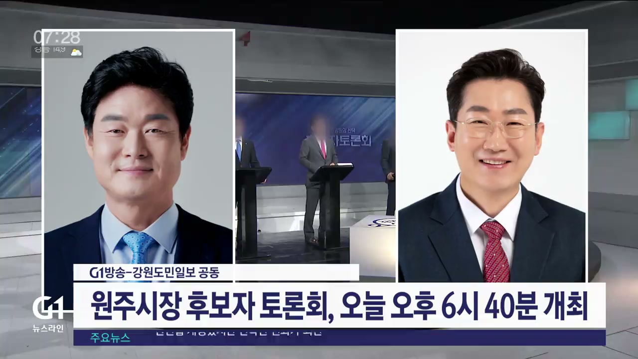 G1방송, 원주시장 후보자 토론회 오늘(12일) 개최