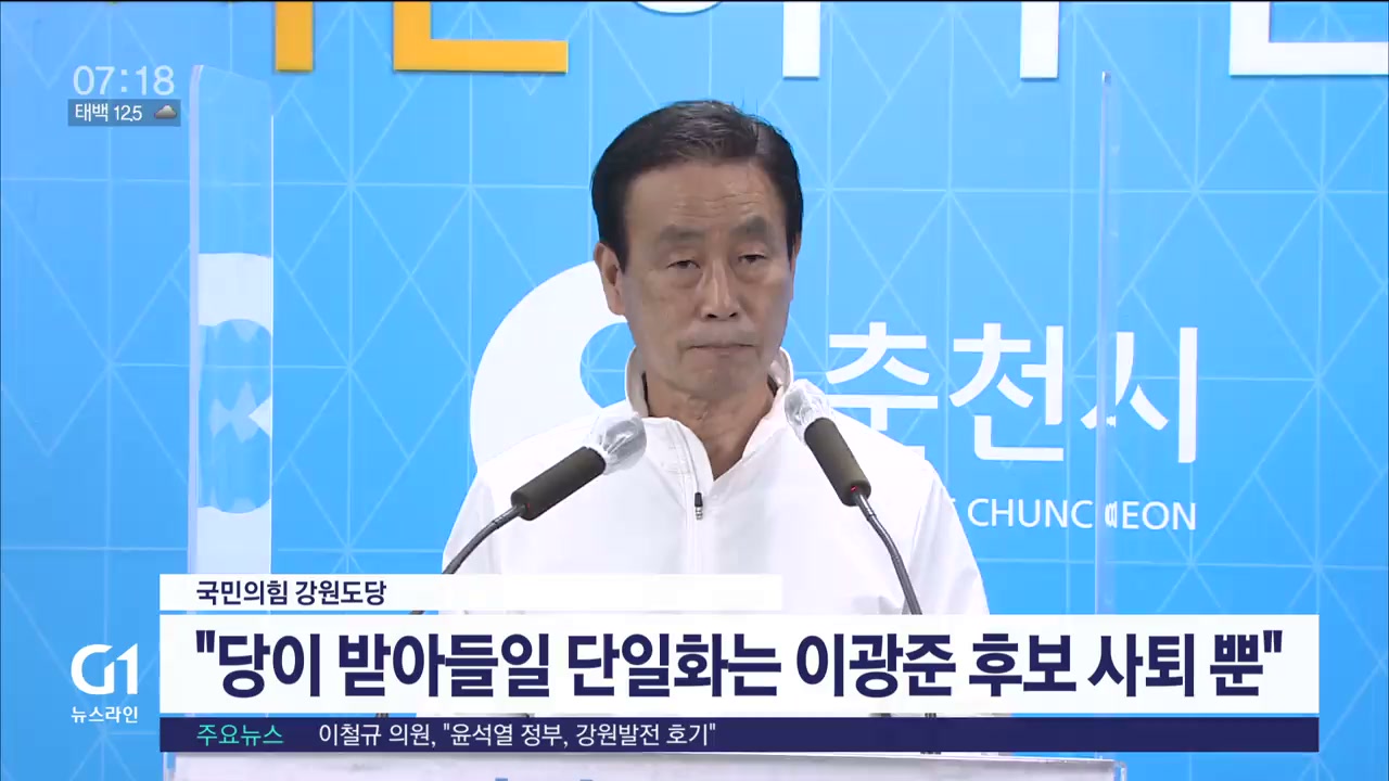 이에대해 국민의힘 강원도당은 '당의 공천 시스템을 부정하고 무소속 출마를 강행한 후보가 당선 후 복당 등을 언급하는 것은 유권자를 무시하는 처사'라며, 당이 수용할 수 있는 단일화는 이광준 후보의 사퇴 뿐이라고 일축했습니다.