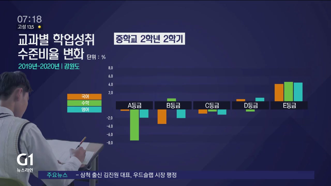 그 결과 도내 학생들은 국영수 과목에서 상위권은 줄고 하위권이 눈에띄게 늘었습니다./