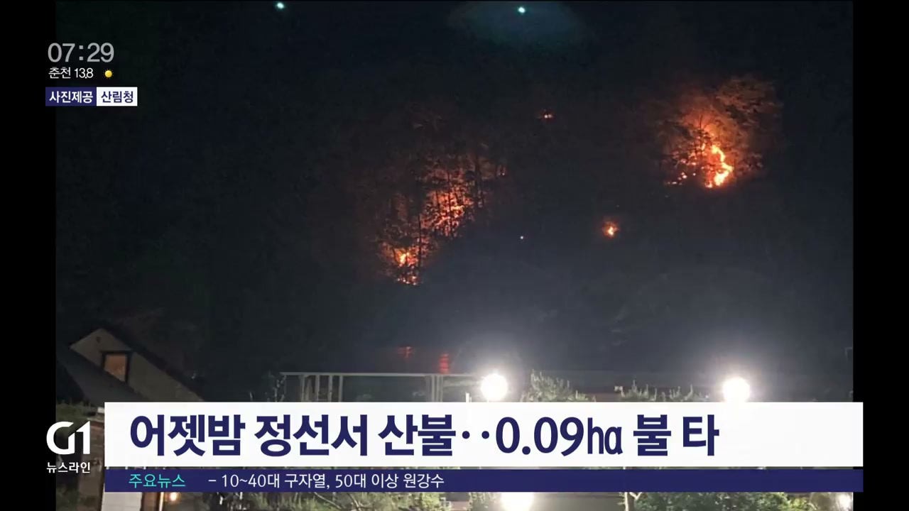 어젯밤(24일) 10시 8분쯤 정선군 여량면 유천리 한 야산에서 불이 났습니다.