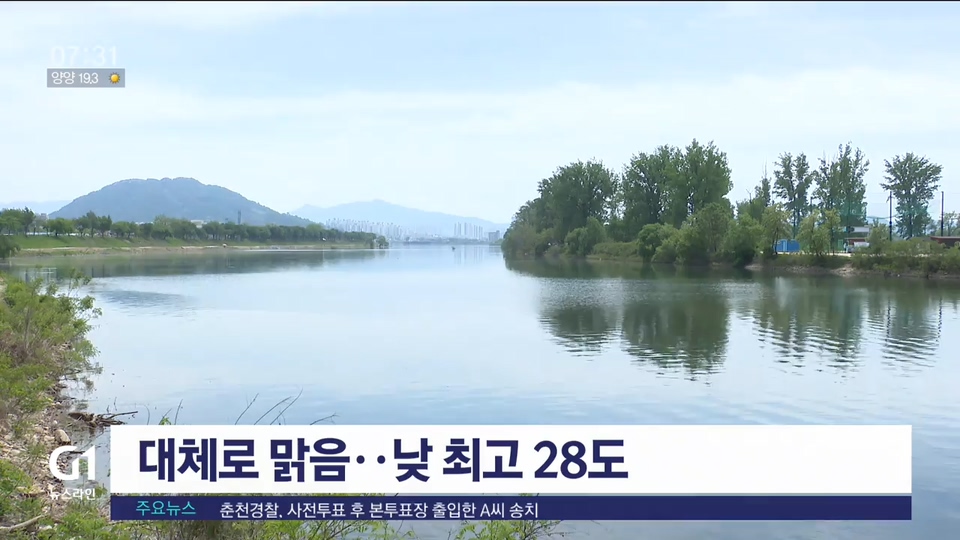 낮 최고기온은 영서권이 25도에서 28도, 영동권은 24도에서 27도의 분포를 보이겠습니다.