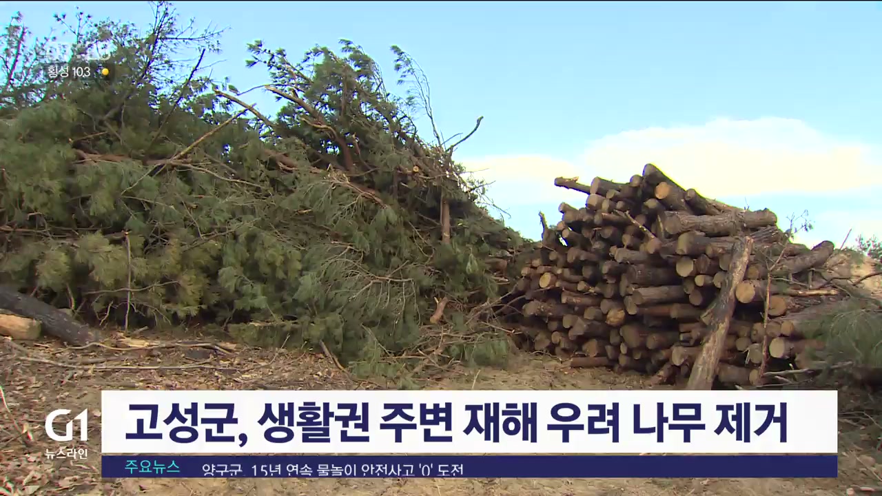 고성군은 태풍과 폭설 등의 재해 위험요인이 되는 생활권 주변 나무 제거 사업을 시행합니다.