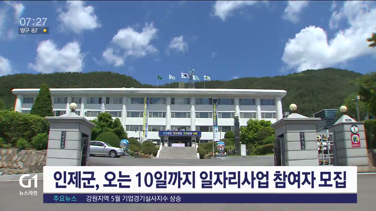 인제군이 지역 취약계층의 생계안정을 돕기 위해 오는 10일까지 하반기 일자리사업 참여자 158명을 모집합니다.