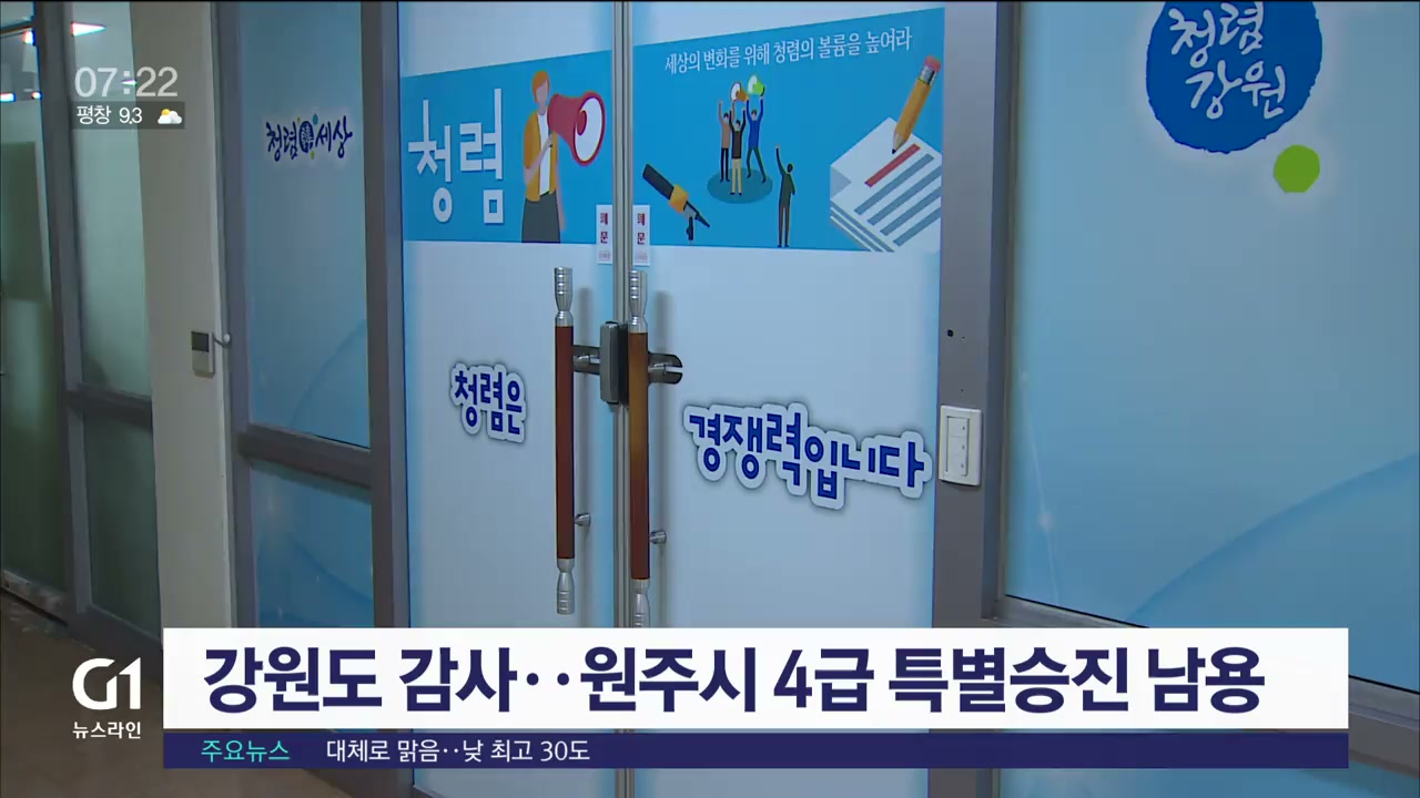원주시청 간부 공무원들에 대한 특별승진 과정에서 인사 재량권이 남용됐다는 강원도 감사 결과가 나와 논란이 일고 있습니다.