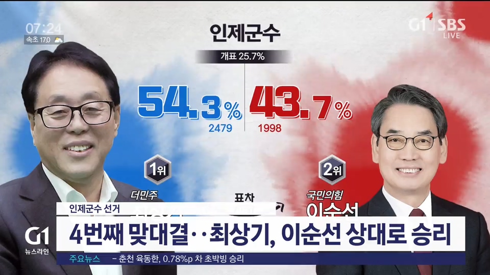 2011년 재보궐선거부터 올해 지방선거까지, 무려 4번의 맞대결이 펼쳐진 인제군수 선거.