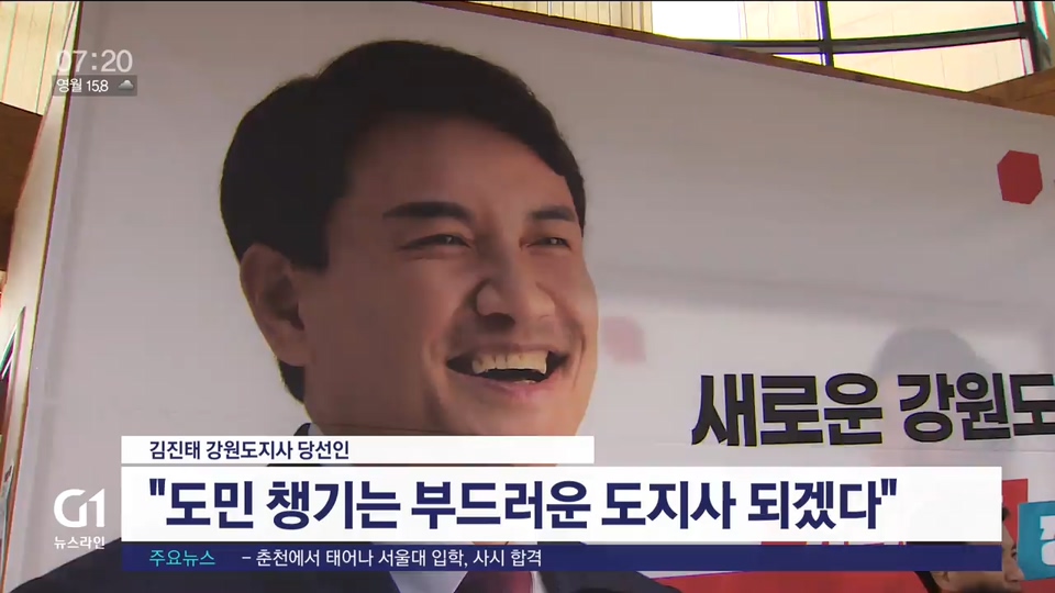 "이제 앞으로 임기 4년 동안 최선을 다해서 발로 직접 뛰고 우리 154만 강원도, 정말 대접받는 강원도 만들 수 있도록 최선을 다하겠습니다."