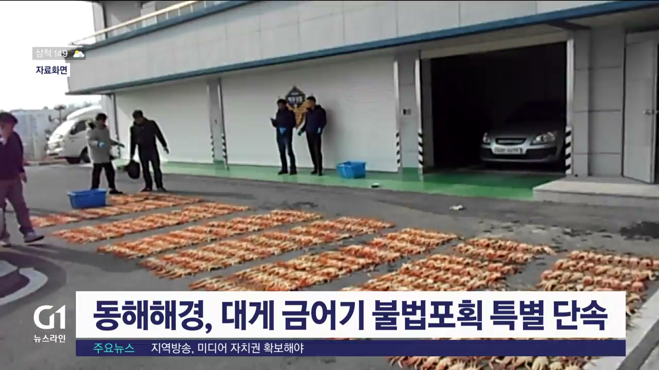 동해해경은 이달부터 오는 11월까지 대게 금어기를 맞아 100톤급 형사기동정을 활용해 해상과 연계한 대게 불법 포획과 유통 판매 행위 등을 단속할 계획입니다.