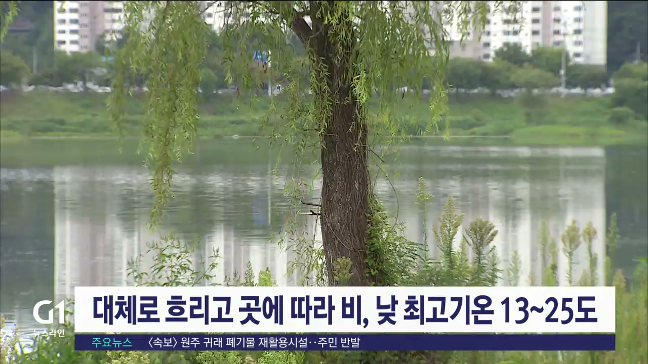 대체로 흐리고 곳에따라 비, 낮 최고기온 13~25도