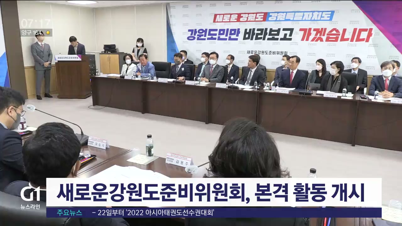 강원도지사직 인수위원회인 '새로운 강원도준비위원회'가 도정 업무보고를 받는 등 본격적인 인수위 활동을 개시했습니다.