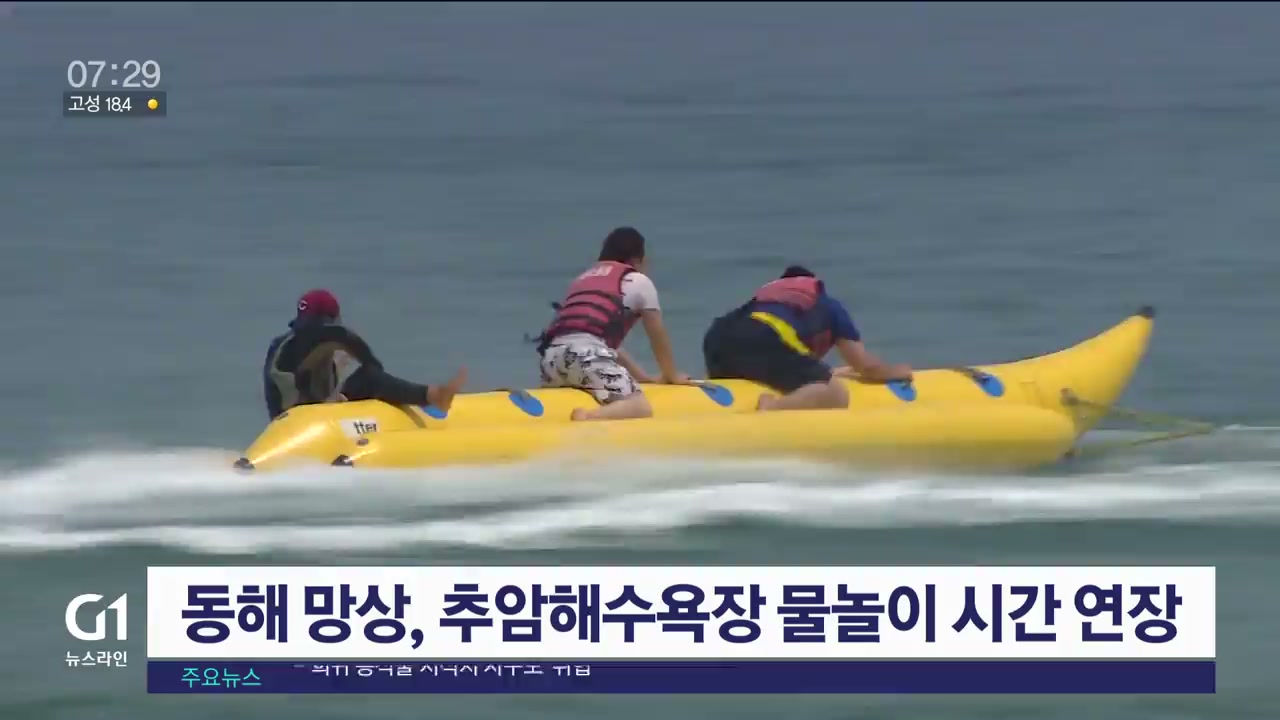 동해시는 오는 7월 13일부터 40일간 개장하는 관내 6개 해수욕장 중 망상과 추암해수욕장의 물놀이 시간을 7월 29일부터 열흘간 오후 7시 까지로 1시간씩 연장 운영할 계획입니다.