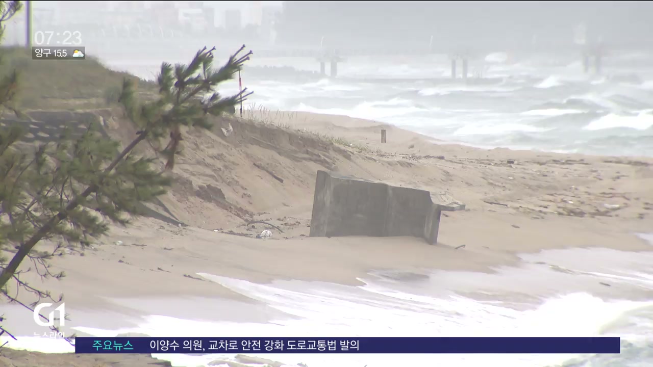 "테트라포트를 가지고 임시로 앞을 막아주겠다고 약속을 했는데 전혀 지켜지지 않고 지금 현재 모래 주머니를 쌓았는데 모래주머니도 지금 현재 강한 파도에 다 유실됐습니다."