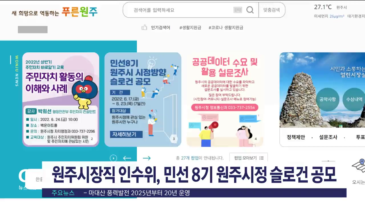 원주시장직 인수위, 민선 8기 원주시정 슬로건 공모