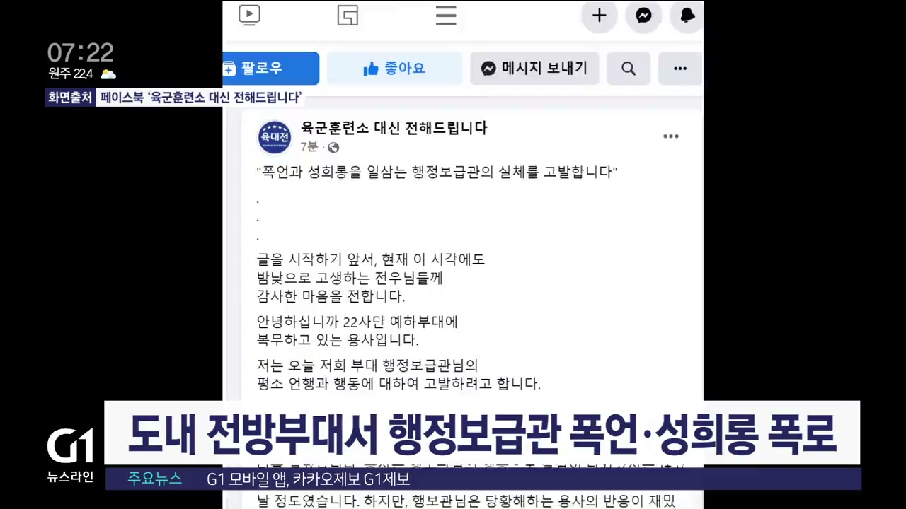 자신을 육군 모 사단 예하부대 장병이라고 소개한 A씨는 페이스북 '육군훈련소 대신 전해드립니다'를 통해,