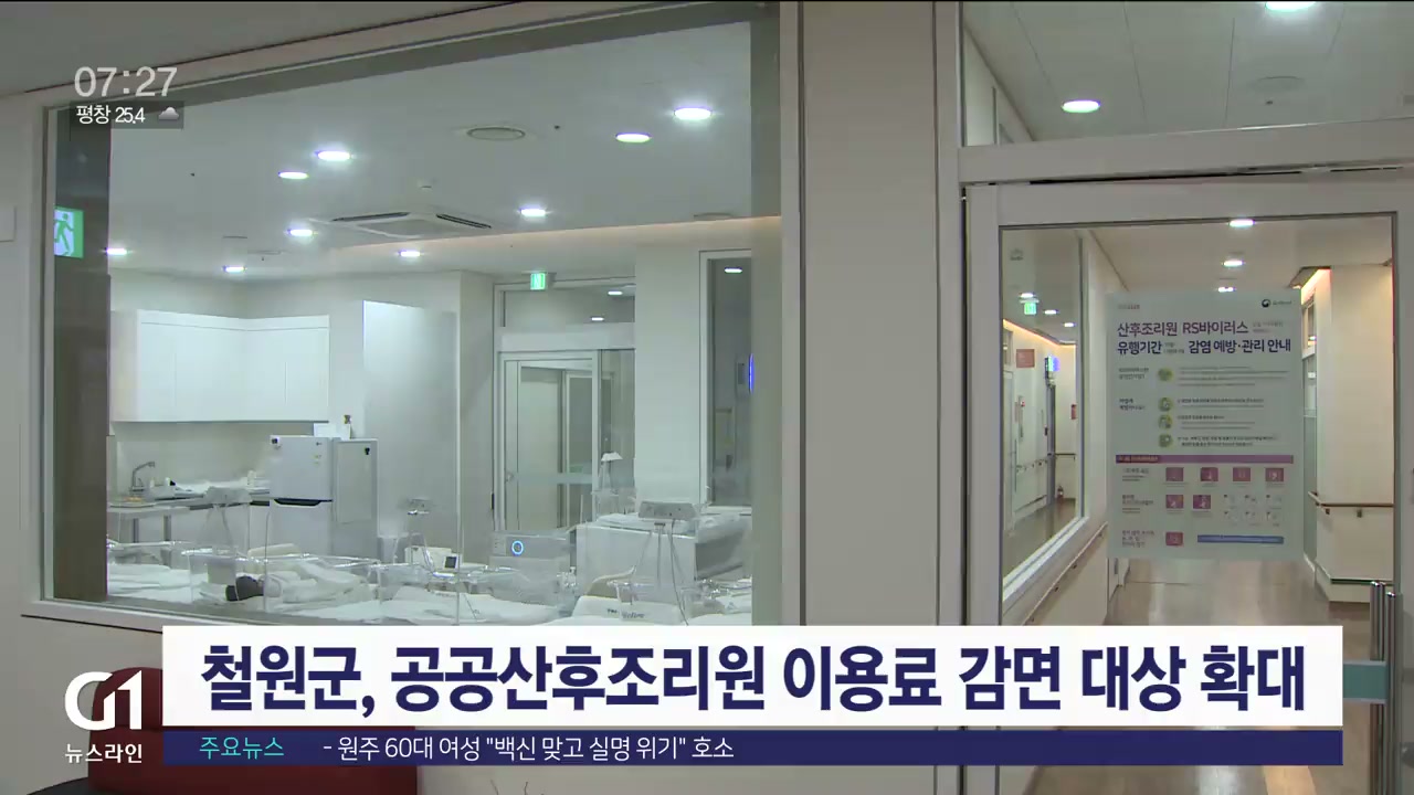 철원군이 공공산후조리원 이용료 감면 대상을 확대합니다.