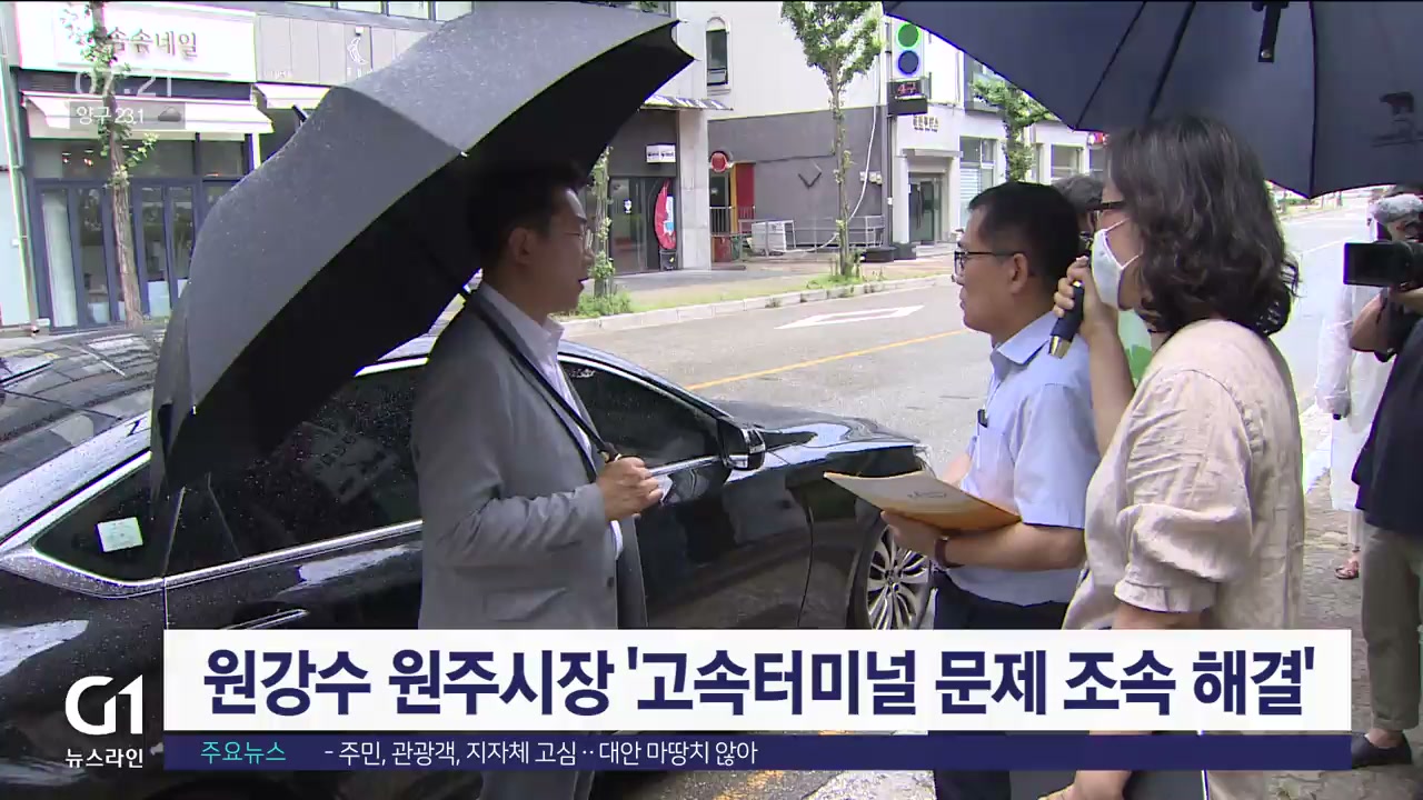 G1 뉴스에서 보도한 원주 고속버스터미널 부실 운영과 관련해 원강수 원주시장이 단계동 일대에 마련된 임시 승강장 부지를 직접 방문하고 조속한 문제 해결을 약속했습니다.
