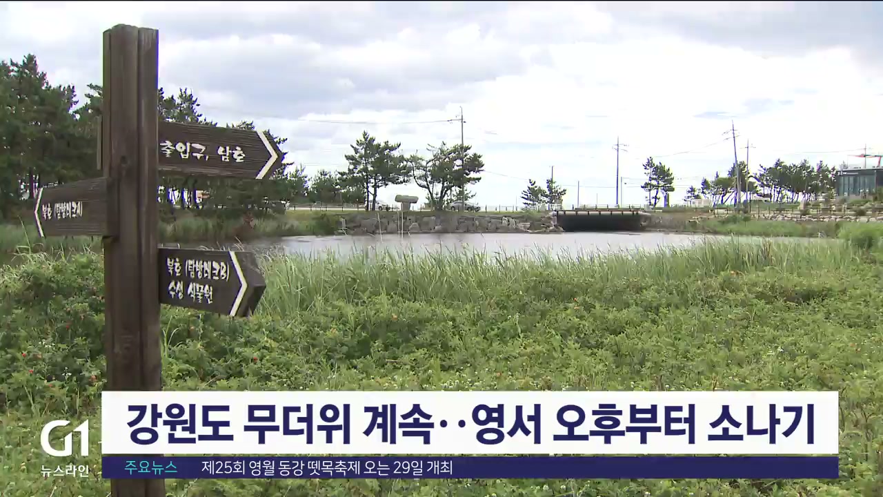 오늘(6일) 강원도는 대체로 흐린 가운데, 오후부터 영서권을 중심으로 강한 소나기가 내리겠습니다.