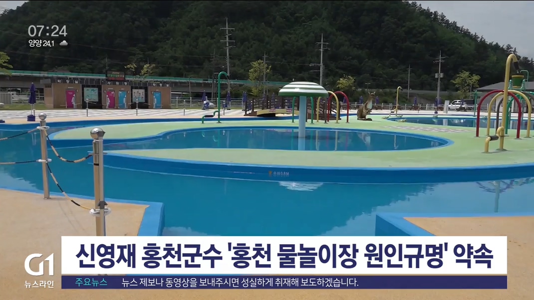 G1 뉴스에서 보도한 홍천 물놀이장 집단 장염과 관련해 신영재 홍천군수가 철저한 원인규명과 대책 마련을 약속했습니다.
