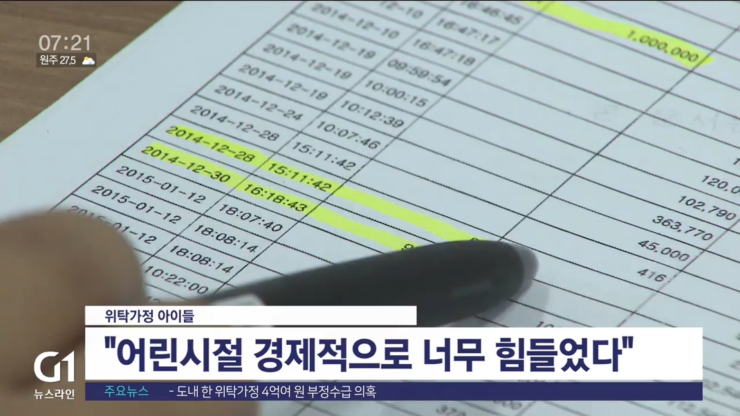 지원금이 계속 나오는데도, 성인이 된 후엔 보조금이 끊겨 쌀만 지원된다면서 알아서 밥을 해먹으라는 말도 위탁모로부터 들었다고 합니다.