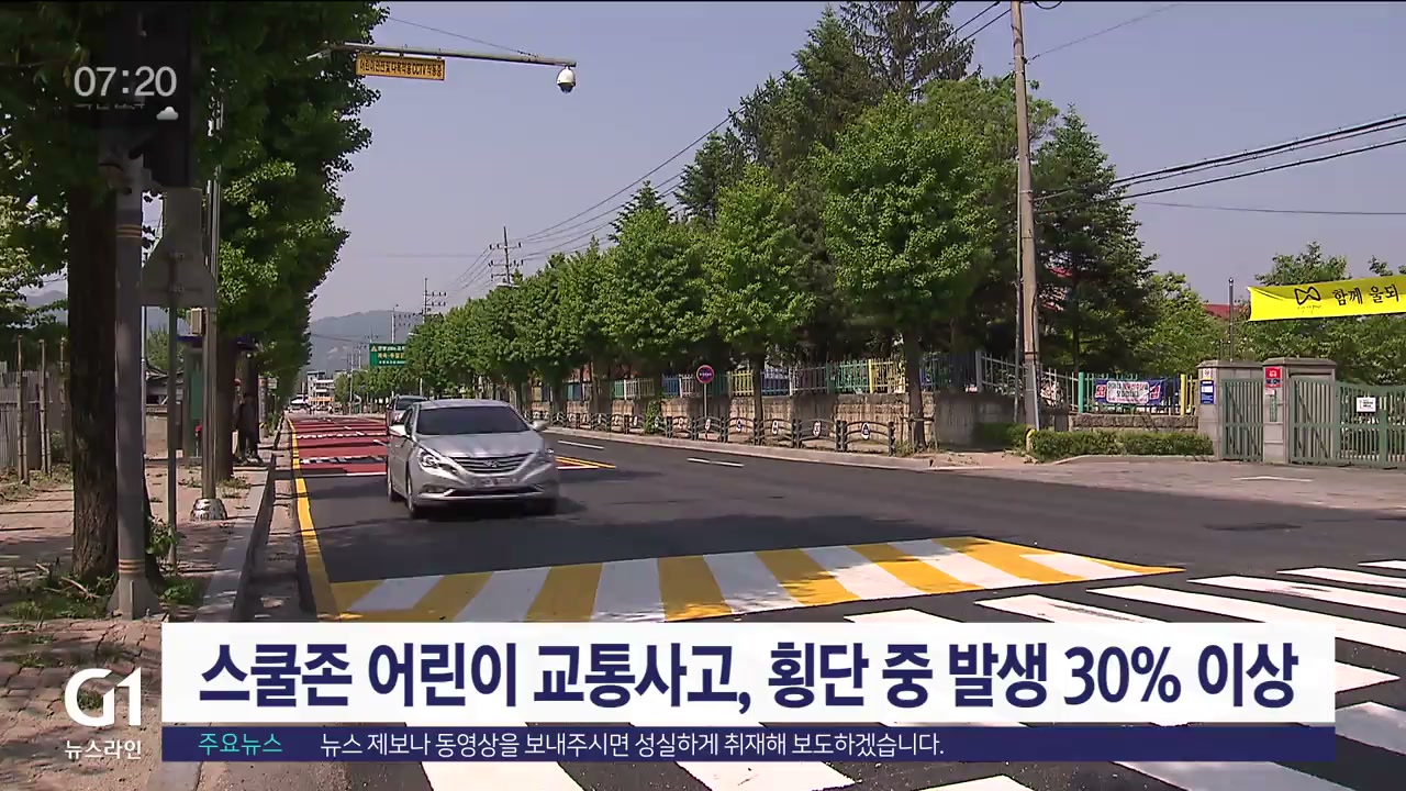 도내 스쿨존에서 발생한 어린이 교통사고 가운데, 길을 건너다가 발생한 사고가 3분의 1 이상인 것으로 나타났습니다.