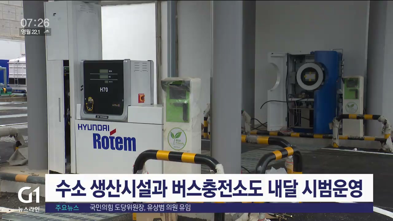 하루 1천kg의 수소 연료를 생산해 수소버스 충전소와 수소 충전소에 공급하는 생산설비도 다음달 운영에 들어갑니다.