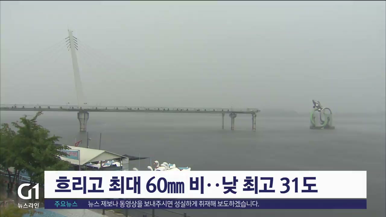 오전에는 도내 대부분 지역에서 최대 60㎜의 비가 내리겠고, 오후에는 영서와 산간 지역을 중심으로 최대 20㎜의 소나기가 예상됩니다.