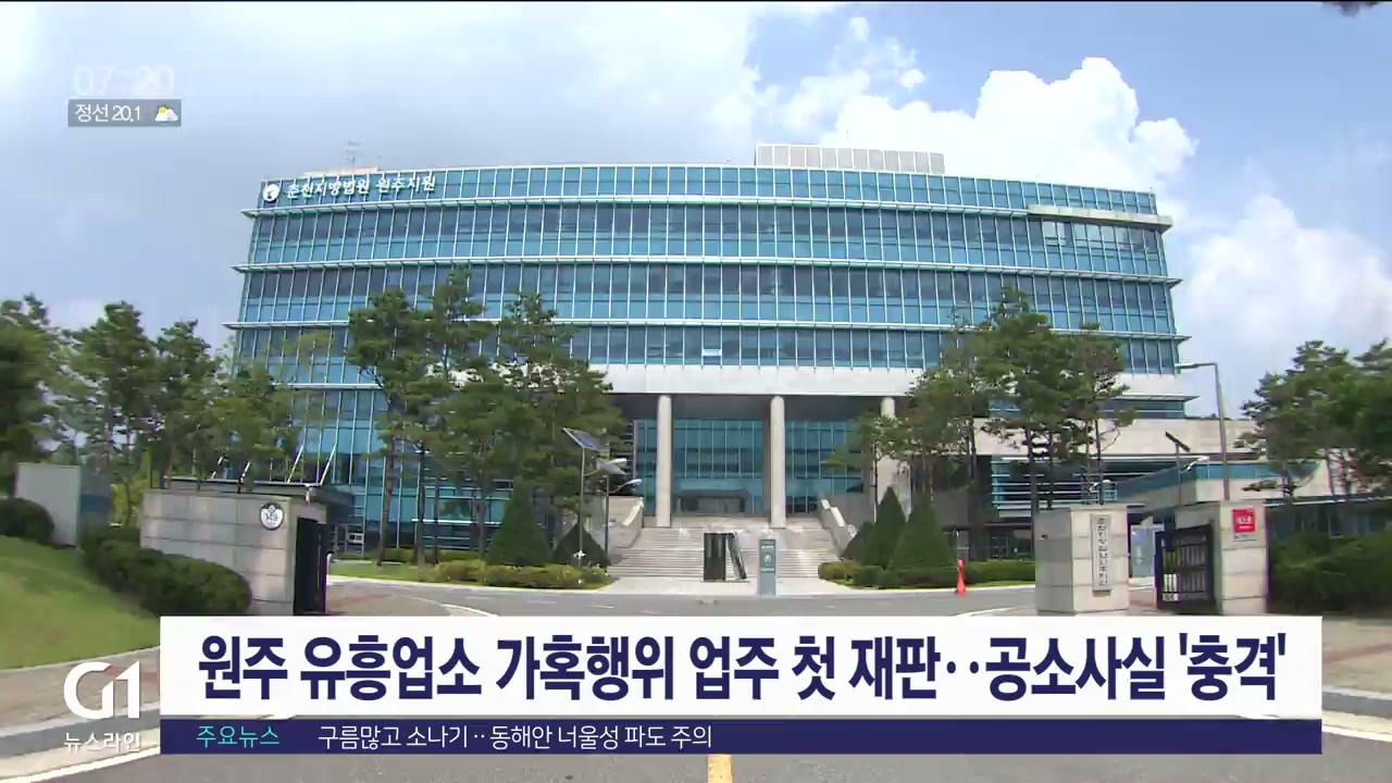 G1 뉴스에서 집중 보도한 원주 유흥업소 여종업원 가혹행위 사건 가해자들에 대한 첫 재판이 춘천지법 원주지원에서 열렸습니다.