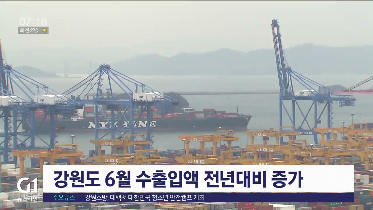 지난달(6월) 강원도 수출입액이 지난해보다 증가한 것으로 나타났습니다.