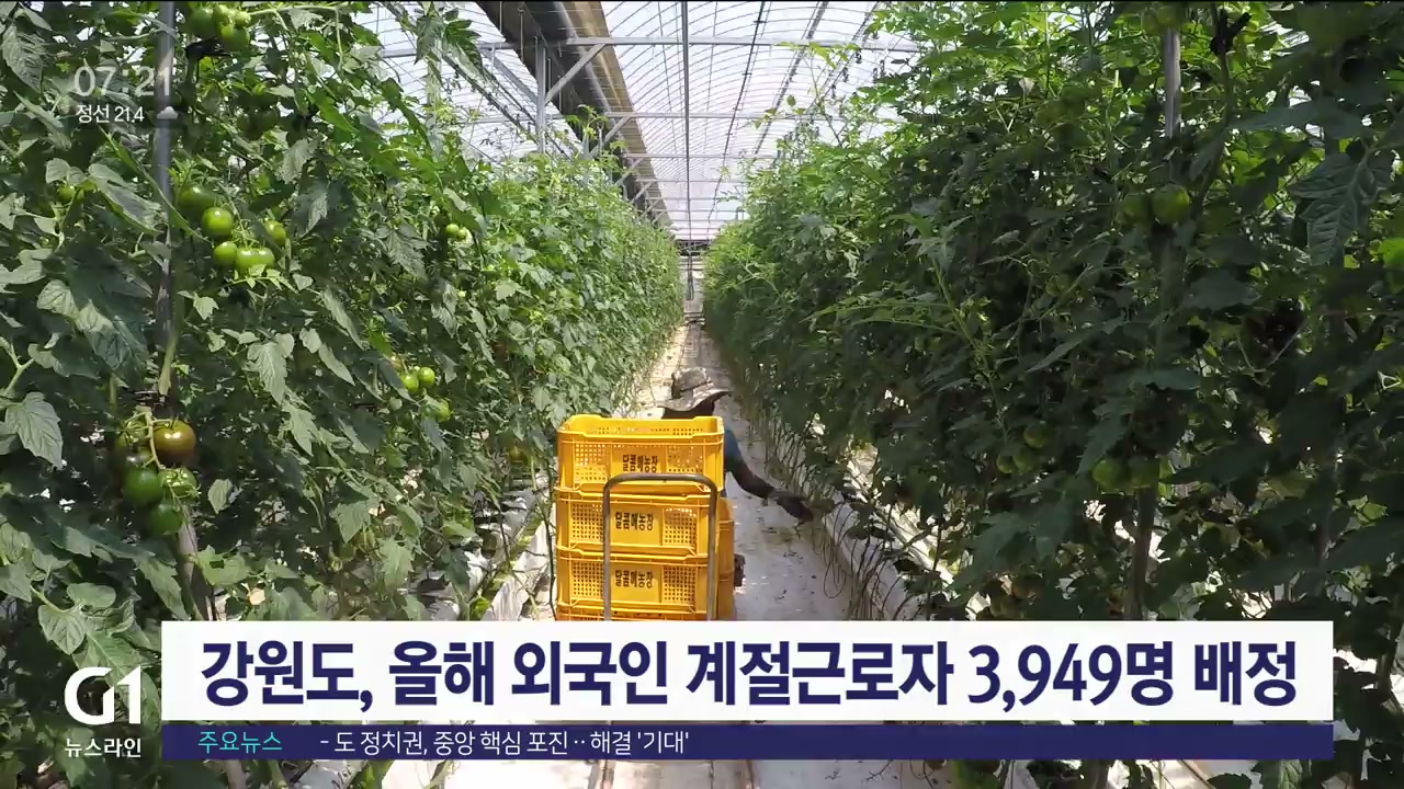 강원도는 농가 인력 문제 해결을 위해 올해 법무부로부터 외국인 계절 근로자 3,949명을 배정받았다고 밝혔습니다.