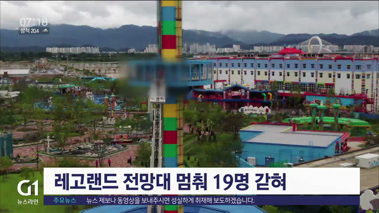 어제 오후 12시 35분쯤 춘천 레고랜드 레고타워 전망대가 25m 지점에서 멈춰, 이용객이 갇히는 사고가 발생했습니다.