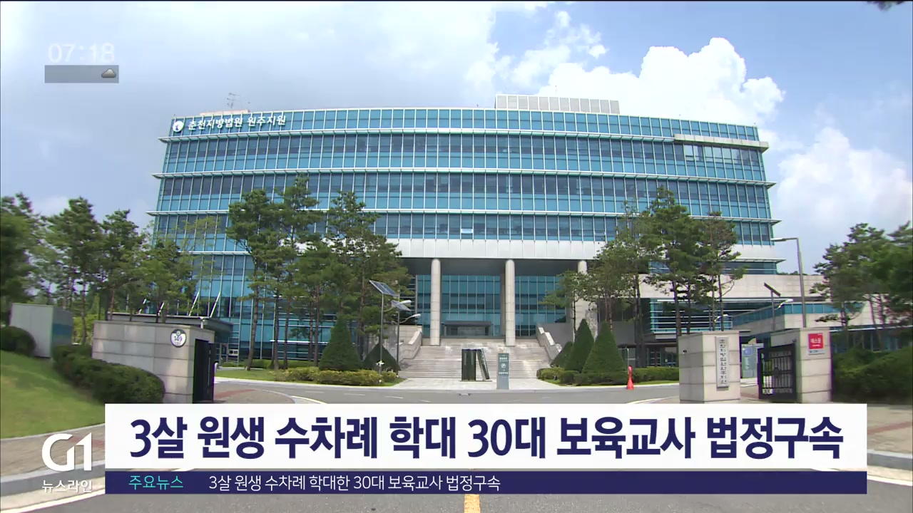 춘천지법 원주지원 형사3단독 신교식 부장판사는 아동학대범죄의 처벌 등에 관한 특례법 혐의로 기소된 어린이집 보육교사 34살 A씨에게 징역 6개월의 실형을 선고하고 법정 구속했습니다.