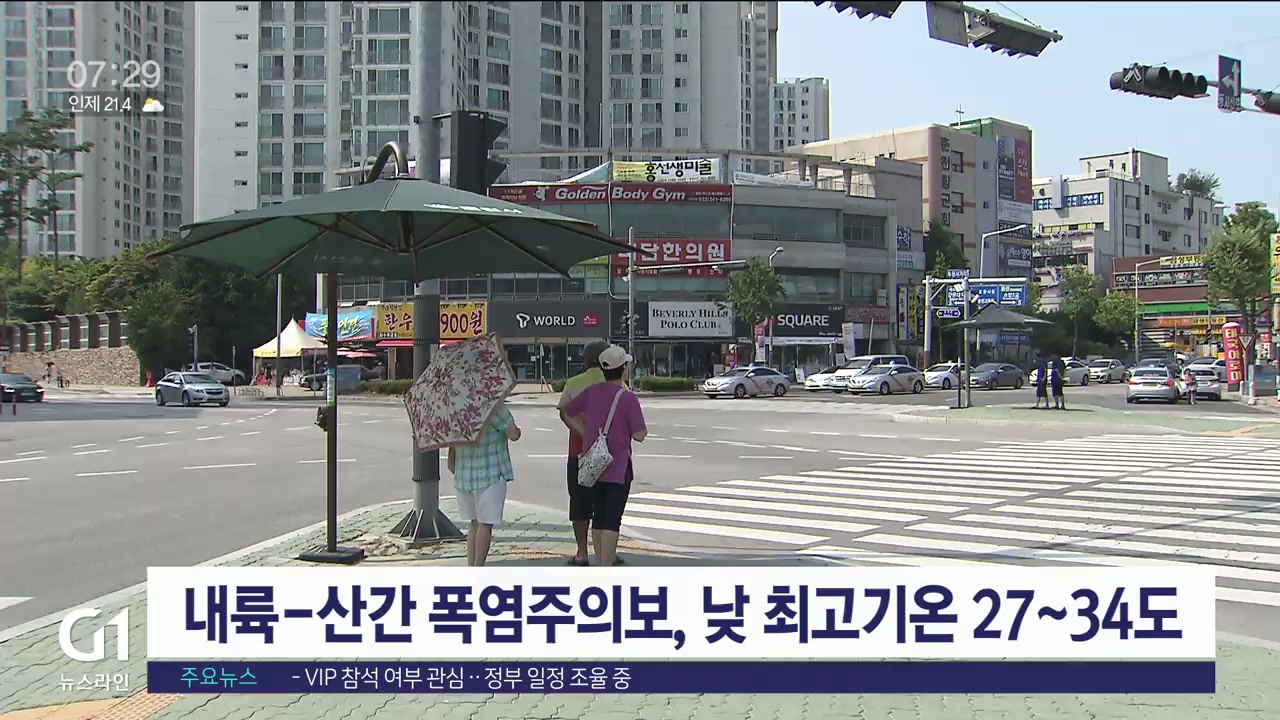 내륙-산간 폭염주의보, 낮 최고기온 27~34도
