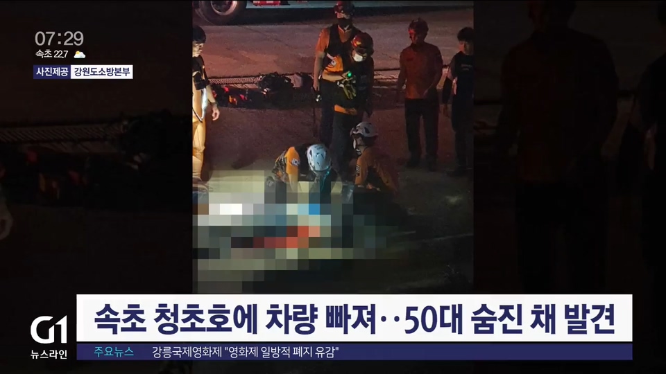 속초 청초호에 차량 빠져..50대 숨진채 발견