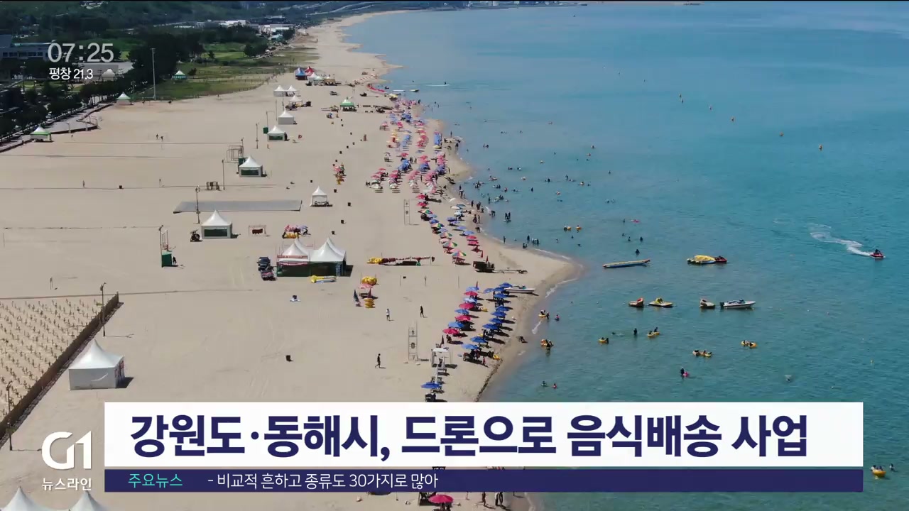 강원도와 동해시가 망상 해수욕장을 찾는 관광객들을 대상으로 오늘(28일)부터 자율비행 드론으로 음식을 배송하는 사업을 선보입니다.