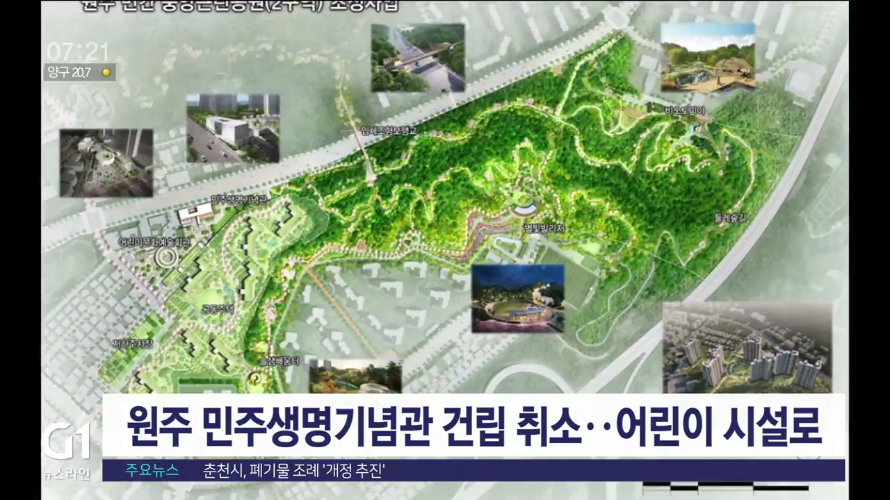 <속보>원주 민주생명기념관 건립 취소..어린이 시설로
