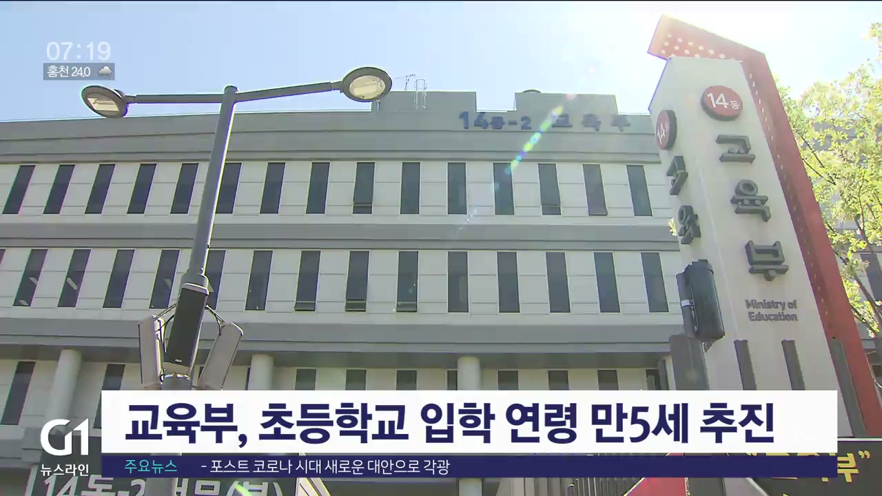 교육부가 이르면 오는 2025년부터 초등학교 입학연령을 현행보다 1년 낮춘 만 5세로 정하자는 내용의 학제 개편안을 발표했습니다.