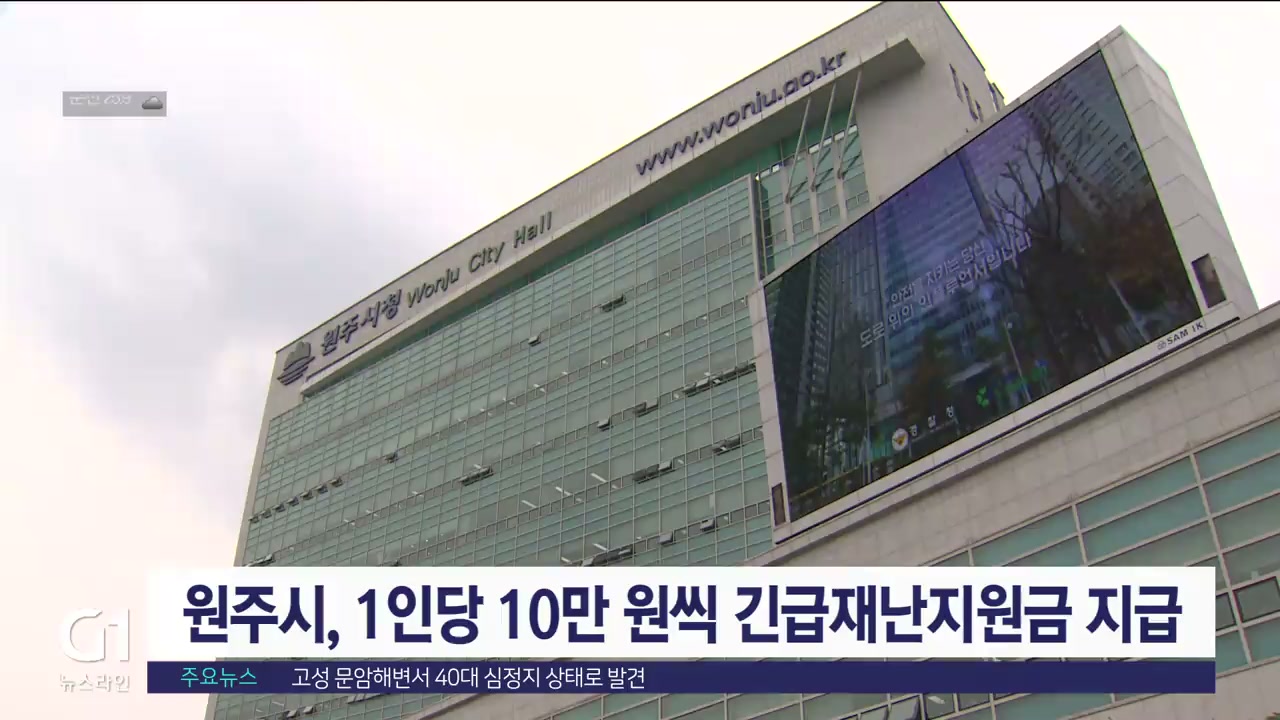 원주시, 1인당 10만 원씩 긴급재난지원금 지급