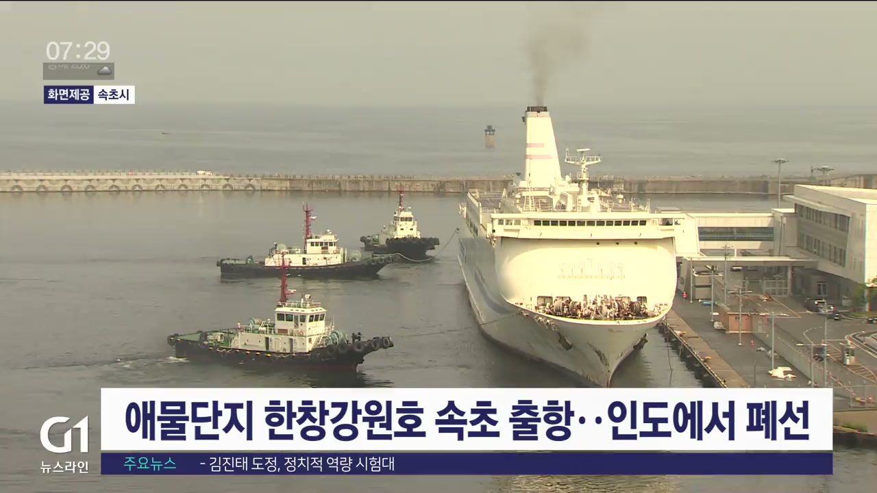 애물단지 한창강원호 속초 출항..인도에서 폐선