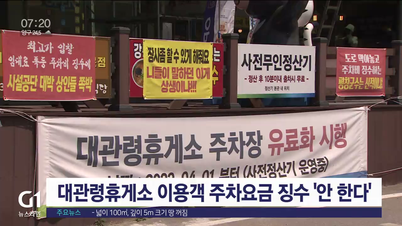 G1 뉴스에서 보도한 옛 영동고속도로 대관령휴게소 주차요금 징수 문제와 관련해 평창군시설관리공단이 당분간 주차요금을 받지 않기로 결정했습니다.