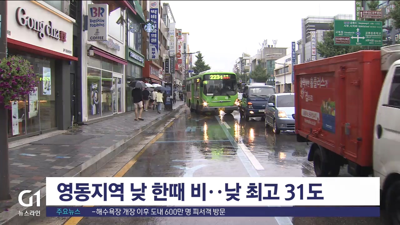 낮 최고기온은 영서지역이 29도에서 31도, 영동지역은 28도에서 30도의 분포를 보이겠습니다.