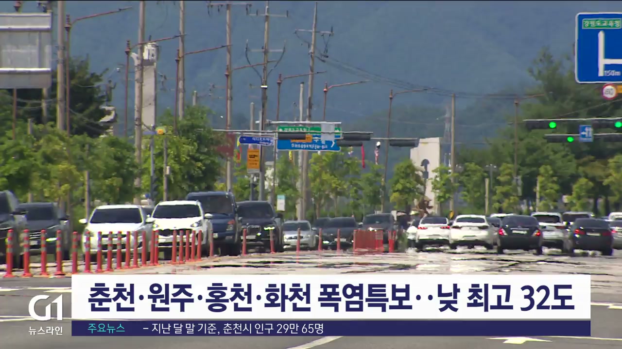 춘천·원주·홍천·화천 폭염특보..낮 최고 32도