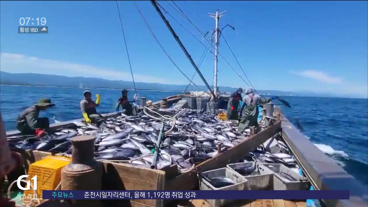 "참다랑어가 몇 년 전부터 많이 나는 추세인데 처리 방안 때문에 어민들이 고심을 하고 있어요. 육지하고 어장 쪽하고 거리가 가깝다 보니까 바다에 떠내려 왔을 때 냄새하고 해양 오염 때문에.."