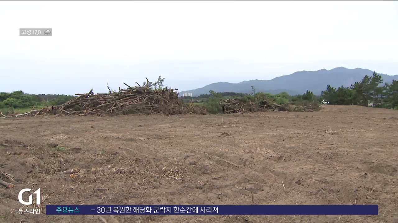 이 과정에서 산불에 탄 소나무를 잘라내는 건 좋았는데, 야생 해당화까지 훼손한 겁니다.
