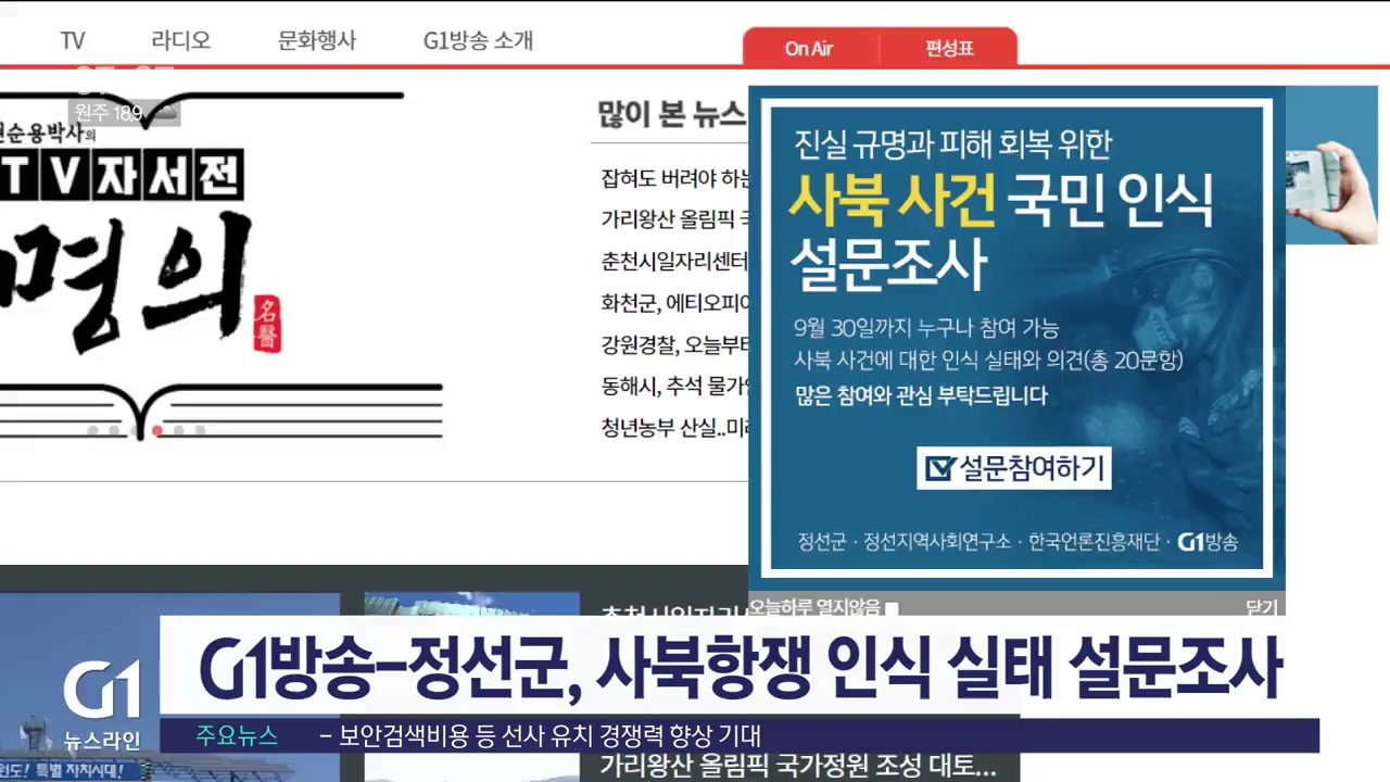 <속보>G1방송, 사북항쟁 인식 실태 설문조사 실시