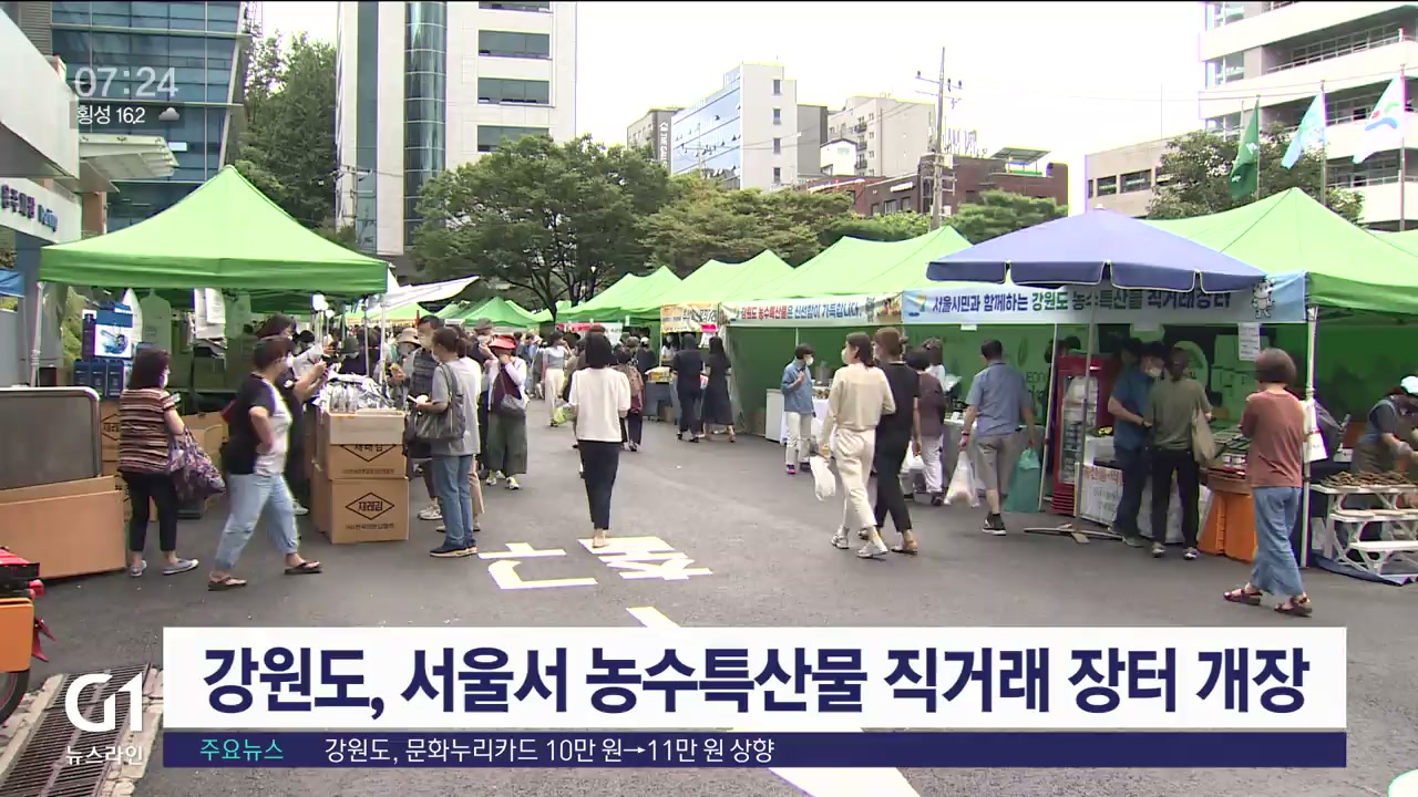 강원도가 도내 11개 시.군과 함께, 추석 명절을 앞두고 서울에서 농수특산물 직거래 장터를 개장합니다.