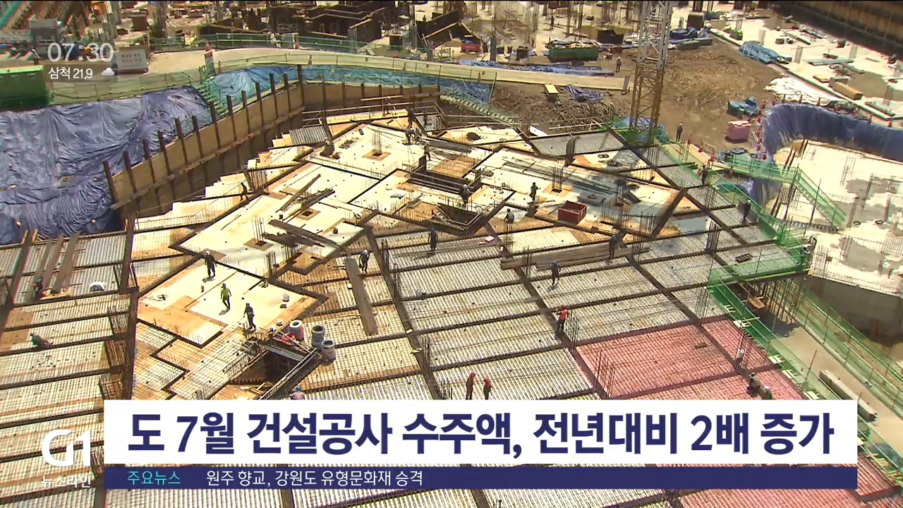 지난 7월 강원도의 건설공사 수주액이 지난해와 비교해 두배 이상 증가한 것으로 분석됐습니다.
