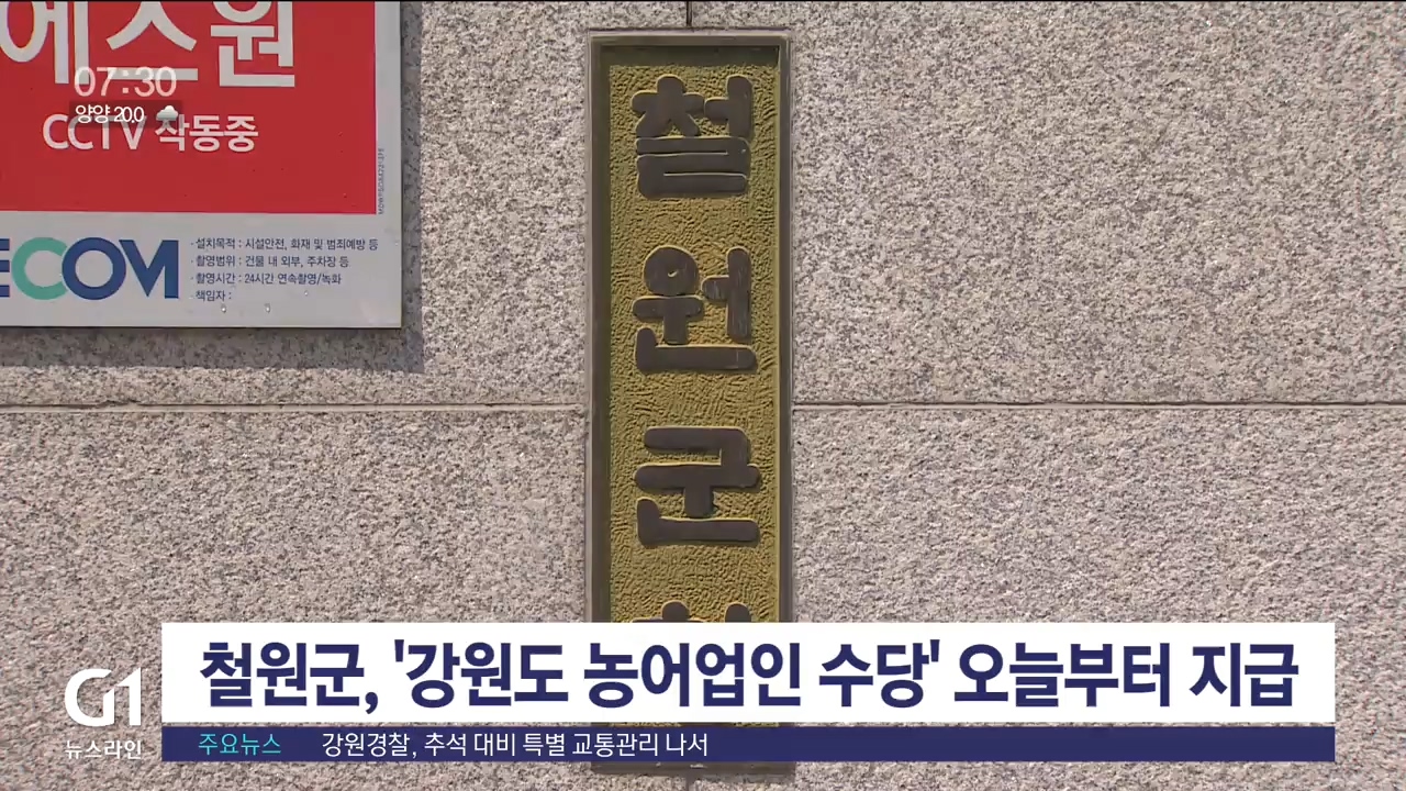 철원군은 강원도 농어업인 수당을 오늘(5일)부터 지급한다고 밝혔습니다.
