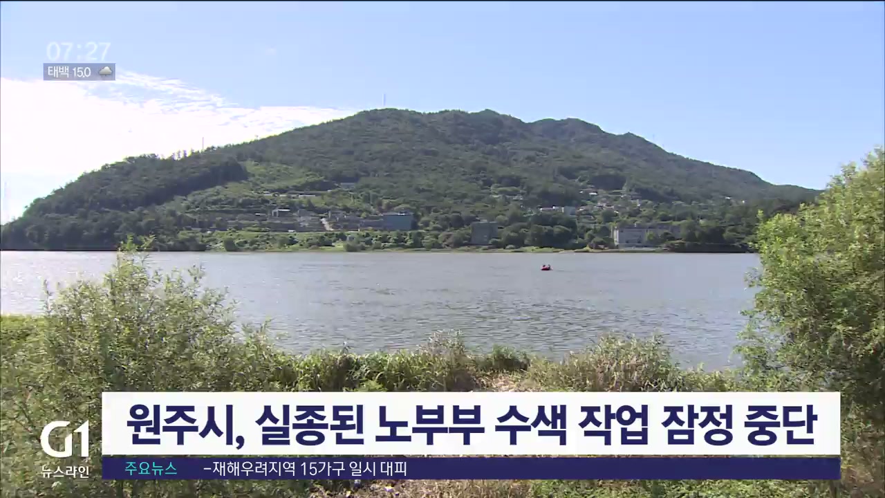 원주시는 지난 달 집중 호우 때 부론면 일대에서 실종된 노부부에 대한 수색 작업을 잠정 중단하기로 했습니다.