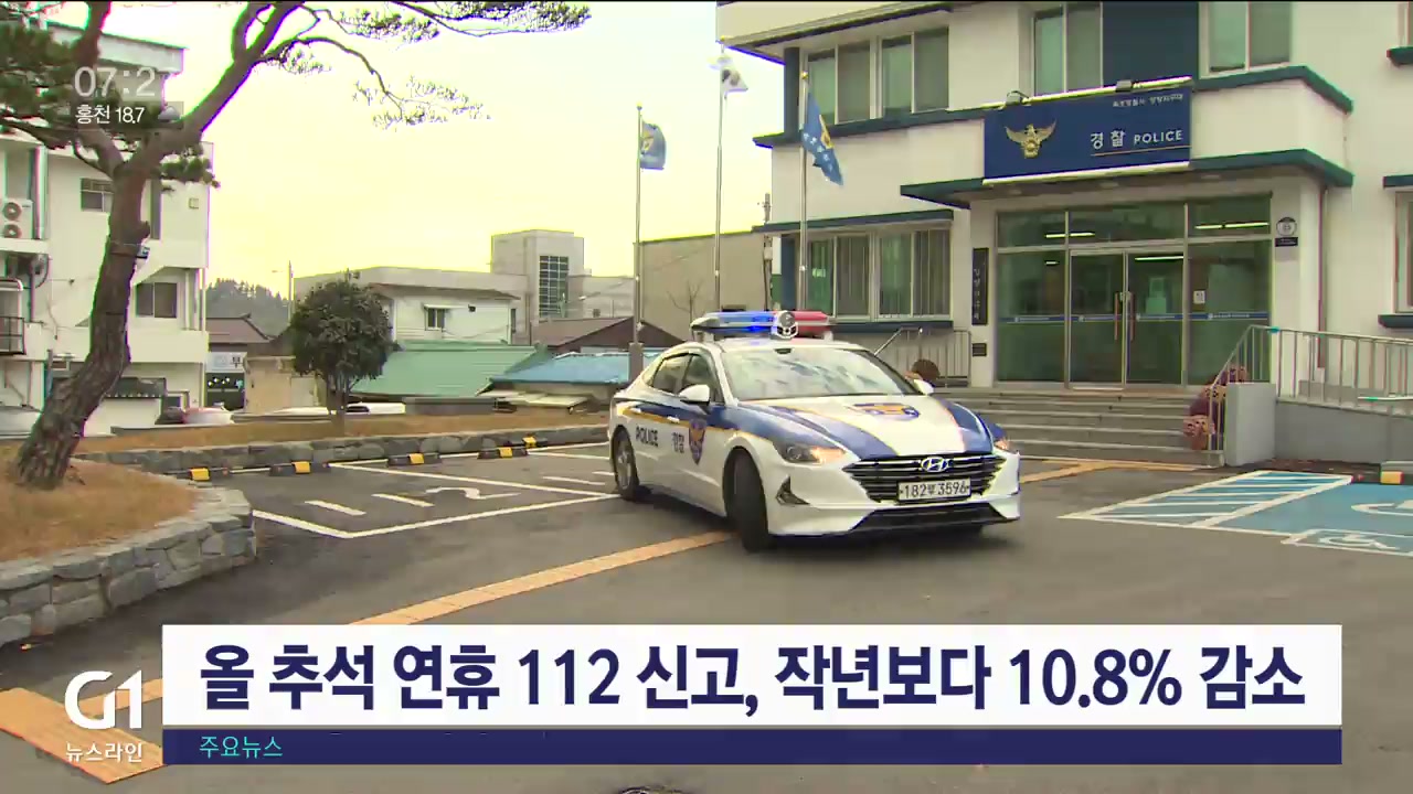 강원경찰청에 따르면, 가정폭력과 아동학대, 폭력범죄와 교통사고 등 112 신고가 지난해 추석 연휴와 비교해 10.8% 감소했습니다.