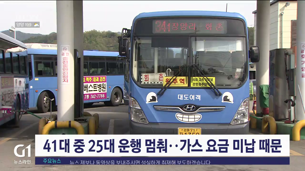 원주의 한 시내버스 업체가 연료 공급에 차질을 빚으면서 절반 가량의 운행이 중단돼 시민 불편이 예상됩니다.